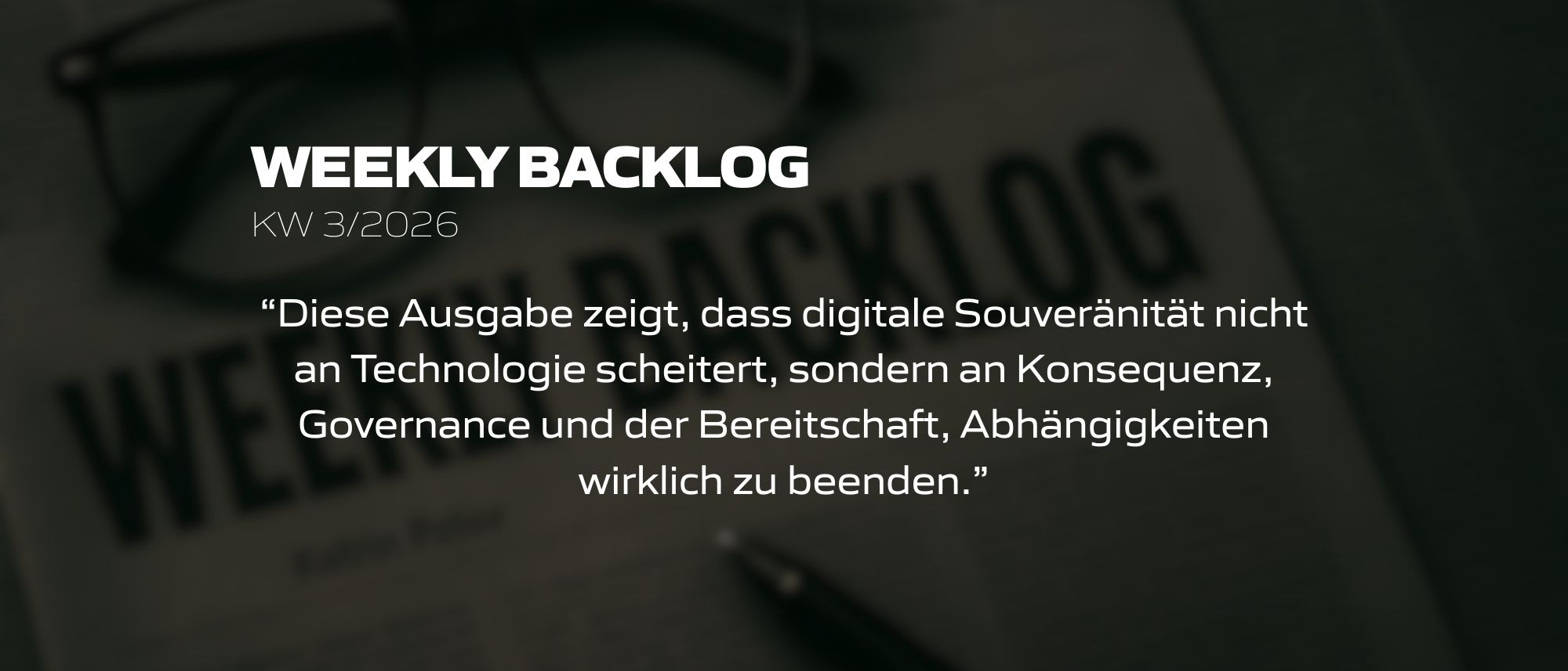 Digitale Souveränität wird gern beschworen, solange sie abstrakt bleibt. Als Zielbild. Als Vision. Als Strategiepapier. Sobald sie jedoch konkrete Entscheidungen verlangt – andere Anbieter, andere Verträge, andere Verantwortlichkeiten – wird sie unbequem. Genau an diesem Punkt trennt sich diese Woche sehr sauber, wer Souveränität meint und wer sie lediglich verwaltet.